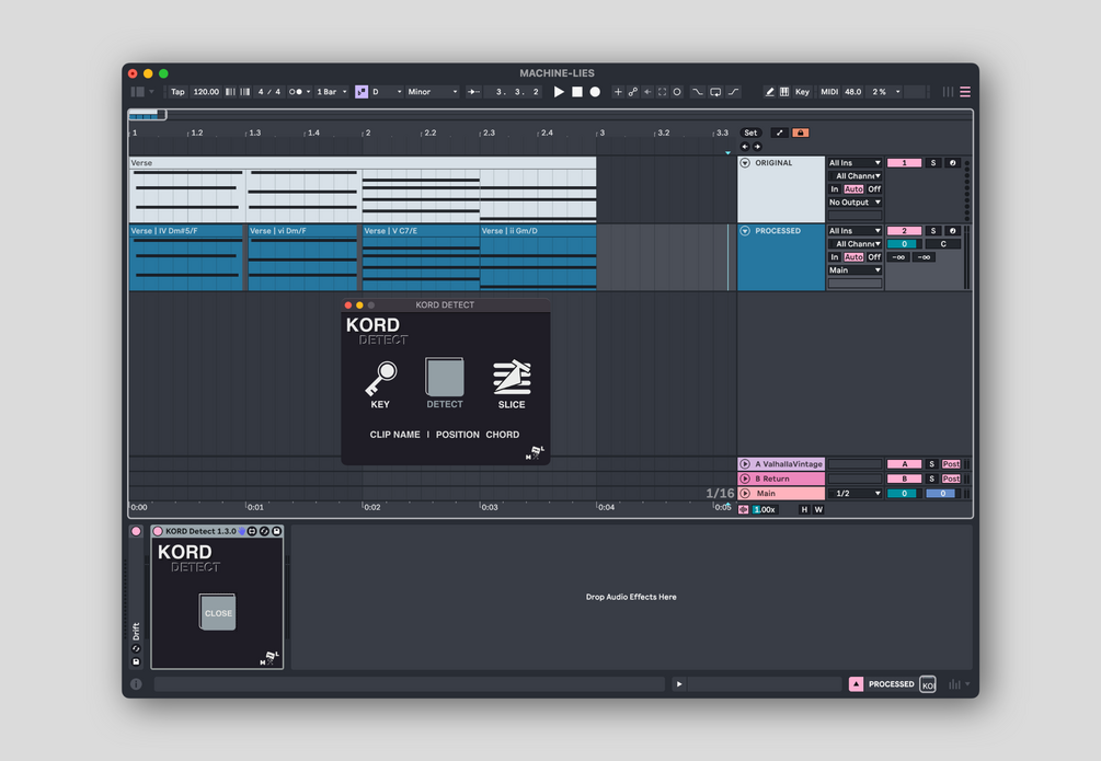 Introducing KORD Detect, a Max for Live device which lets you figure out which chords are being played in a midi clip.